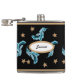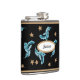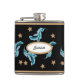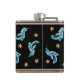 Blue Feathers and Gold Stars Boho Style on Black Hip Flask