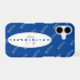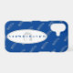 Modern, elegant and stylish white feathers pattern with blue background and trendy typography, framed in a light grey oval. Add your name and monogram.