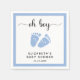 Cute napkins for your baby boy shower featuring "oh boy" in a stylish script with swashes and a blue watercolor of baby feet. Underneath you can easily personalise with your name and shower date.
