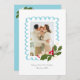 Blue Festive Scallop Frame with Holly One Photo Holiday Card