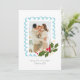 Casual style with a modern feel, this one-photo Christmas holiday card shows off your family's best pic of the year in a pretty, ice blue scalloped frame accented with an illustration of a green holly branch with matching red berries and delicate creamy white flowers. The textural and hand-illustrated feel adds whimsy and artisanal elegance. The approachable hand-writing style fonts keep it low-key and easy to edit text on the back side allows for a longer message and update letter for your closest friends and family to enjoy.