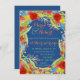 Beautiful tangerine, red and blue Mexican fiesta wedding invitations. These colourful and festive fiesta wedding invitations are easily customised for your event by simply adding your details in the font style and colour, wording and layout of your choice. You can also change the background colour.