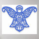 decorate your walls with the ethereal beauty of this blue filigree angel poster. this high quality print features a stunning ornate silhouette and intricate lace scrollwork that serves as a captivating focal point for any room. whether displayed in a bedroom, nursery, or meditation space, this elegant spiritual wall art brings a sense of peace and guardian protection to your home decor.