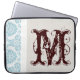 Blue Filigree Damask White Grey Swirly Design Paper Texture Paper-Texture Monogram Initial 15" Laptop Case Bag Personalised