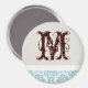 Blue Filigree Damask White Grey Swirly Design Paper Texture Paper-Texture Monogram Initial Kitchen Magnet Personalised