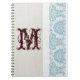 Blue Filigree Damask White Grey Swirly Design Paper Texture Paper-Texture Monogram Initial Note Book Personalised
