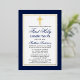 Elegant Navy Blue and Gold First Holy Communion Invitation with Cross. Gold Foil Frame. Gold Foil Cross. Photo Back.
