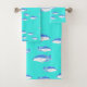 Blue fish on turquoise bath towel set
