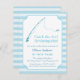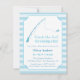 Catch the joy! She's having a boy! This elegant, contemporary and modern fishing themed baby shower is in a simple blue hues colour palette to signify the soon arrival of a baby boy! It has a fishing rod reeling in not a fish but a baby pacifier on its hook. Personalise with your baby shower details. Background of pastel blue stripes.