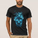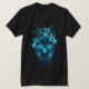 The skull is engulfed in blue flames. Great conversation piece. Different colour backgrounds will change the effect of this design, so have fun trying out the different colour shirts available to see what you come up with.