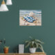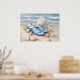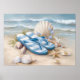 Blue Flip Flops Seashells Coastal Beach Summer Art Poster