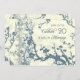 Twentieth wedding anniversary invitation in elegant blue and beige with delicate flowering tree pattern. Customisable with your party details.