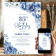 Invite your friends and loved ones with this blue floral 85th birthday party invitation. The customisable text area in this invitation template allows you to effortlessly include all the necessary details for your special birthday celebration, including the date, time, venue, and RSVP information. A variety of paper types and corner styles are available for your unique invitations, along with the option to download if you prefer a digital format.