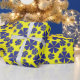 Blue Stylised Floral Abstract On Yellow Background Pattern Design Wrapping Paper