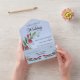 Personalise this All-In-One wedding invitation that comes complete with a tear-off perforated RSVP postcard! Simply fold, then seal the back flap (clear stickers are included), add your postage, and drop it in the mail. Your guests can tear off the perforated RSVP card at the bottom, add their postage (you can include it for them) and drop it in the mail back to you. It's that simple! Choose your printing option (standard or high-definition) and be sure to utilise the template to update the invite with all of your specific information.