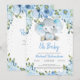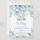 Blue Floral and Cute Elephant Boy Baby Shower Boho Invitation