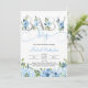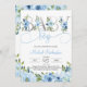 THis is gorgeous boy baby shower invitation features baby blue florals and silver foil lettering