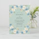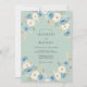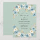 This design features a charming arrangement of blue and cream roses, accented with delicate green foliage. The artwork evokes a soft, romantic atmosphere perfect for a spring or summer celebration. The watercolor-inspired florals create a painterly yet ethereal feel.
