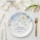 Blue Floral Baby in Bloom Hydrangea Baby Shower Paper Plate