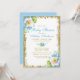 Blue Floral Baby Shower Gold Glitter Invitation B