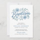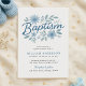 Invite loved ones to a meaningful moment with this modern baptism invitation featuring hand-painted blue floral illustrations, elegant serif and script typography, and a clean white background. The perfect balance of classic and contemporary, this invitation suits baby boy baptisms, christenings, or dedications. Shown with a coordinating envelope, and fully customisable with your event details.