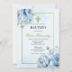 Blue Floral Bautizo Spanish Invitation