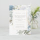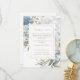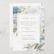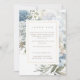 Funeral, bereavement thank you card. Family name and thanks on the back. Typography. Blue Hydrangea floral spray. Message.