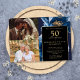 This elegant blue floral black and gold 50th wedding anniversary invitation can be personalised with your information in modern typography and two special photos. Designed by Thisisnotme©