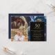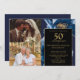 Blue Floral Black Gold 50th Anniversary 2 Photo Invitation