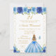 Blue Floral Blonde Hair Princess Birthday Party Invitation