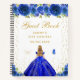 This elegant and glamourous birthday party guest book features a beautiful princess with blonde hair and fair skin in a royal blue ball gown. The text combines handwritten script and modern sans serif fonts for a classy and sophisticated look. The floral arrangements, butterflies and gold confetti create the perfect blend of rustic and chic.