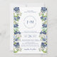 Elegant blue watercolor floral blueberry with bride groom monogram wedding invitation.