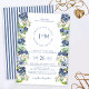 Blue floral blueberry monogram wedding invitation