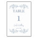 Blue Floral Boho Top Border Wedding Table Number