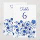Direct guests with this classic table number card, featuring elegant navy typography above a rich blue floral border on a crisp white background. The bold botanical pattern adds a refined "something blue" accent that suits coastal celebrations, romantic garden receptions, and timeless blue and white wedding themes. Coordinate it with matching stationery and day of details to create a cohesive, polished tablescape.