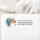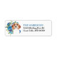 The left side of these return address labels feature a beautiful watercolor image of a Beagle dog emerging from a bouquet of blue and purple flowers. Your custom text is in blue and black at the right.