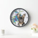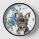 Blue Floral Bouquet Bowtie French Bulldog Clock
