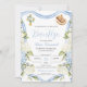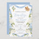 Blue floral boy baptism invitation in Spanish, invitación de Bautizo para niño con flores verdes