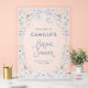 This blue floral acrylic welcome sign features soft watercolor blooms and a delicate bow for a modern garden-inspired entrance display. Printed on clear acrylic for a sleek, elevated look that pairs beautifully with spring and summer bridal shower themes. Personalize with the bride’s name and event date for a cohesive suite.