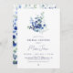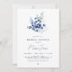 Blue floral bridal shower invitation in a minimalist style with a blue flower bouquet and pattern back. You can personalise this invitation with your own details under the "Personalise this template" section.
