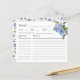 Rustic recipe card for your floral theme bridal shower featuring watercolor illustration of blue peony with greenery. Ask your guests to fill out this recipe card and bring them to the bridal or wedding shower. Perfect for a spring or summer shower.