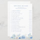 This bridal shower "he said she said" game sheet features a watercolor floral border with elegant flowers in varying shades of blue - perfect for a "Something Blue Before I Do" theme.