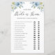 Guess who? Bride or Groom? Add this botanical baby shower He Said, She Said game card to your event. It features watercolor illustrations of off-white and blue roses and peonies with a greenery accent. Personalise by adding back texts. This floral bride or groom card is perfect for winter bridal showers.