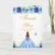 Blue Floral Brown Hair Girl Birthday Party Thank You Card
