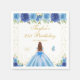 Blue Floral Brown Hair Princess Birthday Party Napkin