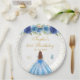 Blue Floral Brown Hair Princess Birthday Party Paper Plate