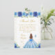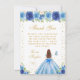 Blue Floral Brown Hair Princess Sweet Sixteen Thank You Card