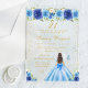 Blue Floral Brunette Hair Princess Birthday Party Acrylic Invitations