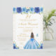 Blue Floral Brunette Hair Princess Birthday Party Invitation
