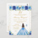 Blue Floral Brunette Hair Princess Birthday Party Postcard